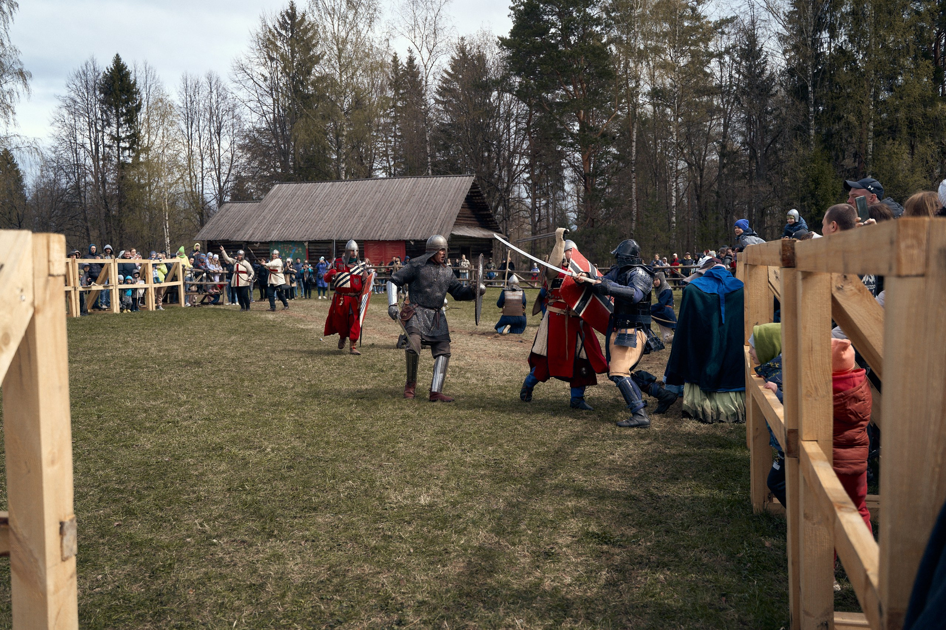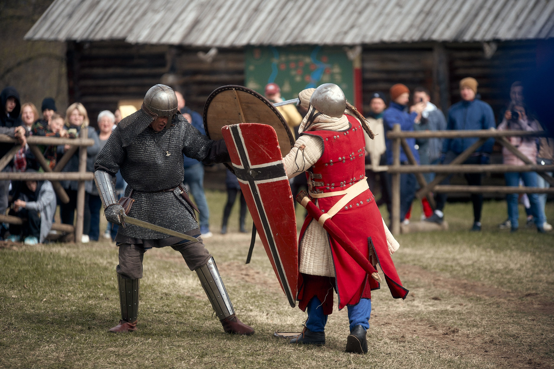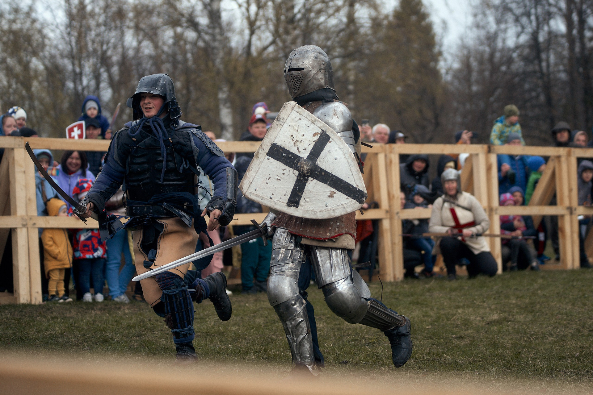 - Рыцарский турнир: В центре внимания — поединки профессиональных бойцов, облаченных в тяжелые доспехи, воссозданные по архивным чертежам.
